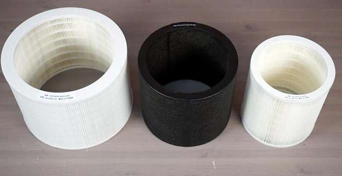 從外到內(nèi)、從左至右分別是MERV18級(jí)HEPA、CH-CUT、MERV14級(jí)HEPA濾網(wǎng)