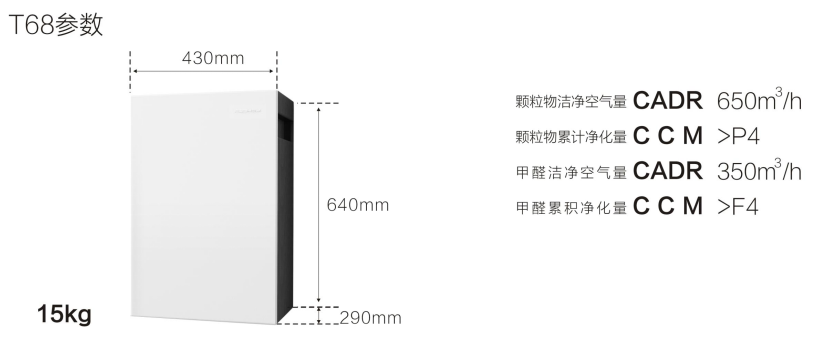 T68主打10小時新房拎包入住的概念,其強大CADR值及甲醛去除能力使其成為現場最受矚目的明星單品。T68卓越的凈化效果源于四層高效濾網的層層凈化:高品質初效濾網、微納米超防護濾網、核心CH-cut醛分解濾網和多功能復合濾網。此外,T68搭載日本NIDEC優質電機,低噪音,長壽命,性能優越,可連續運轉20000個小時,提供穩定高效的澎湃動力。CADR顆粒物700m3/h和 CADR甲醛350m3/h的優良表現使其真正做到了新國標的“三高一低”。
